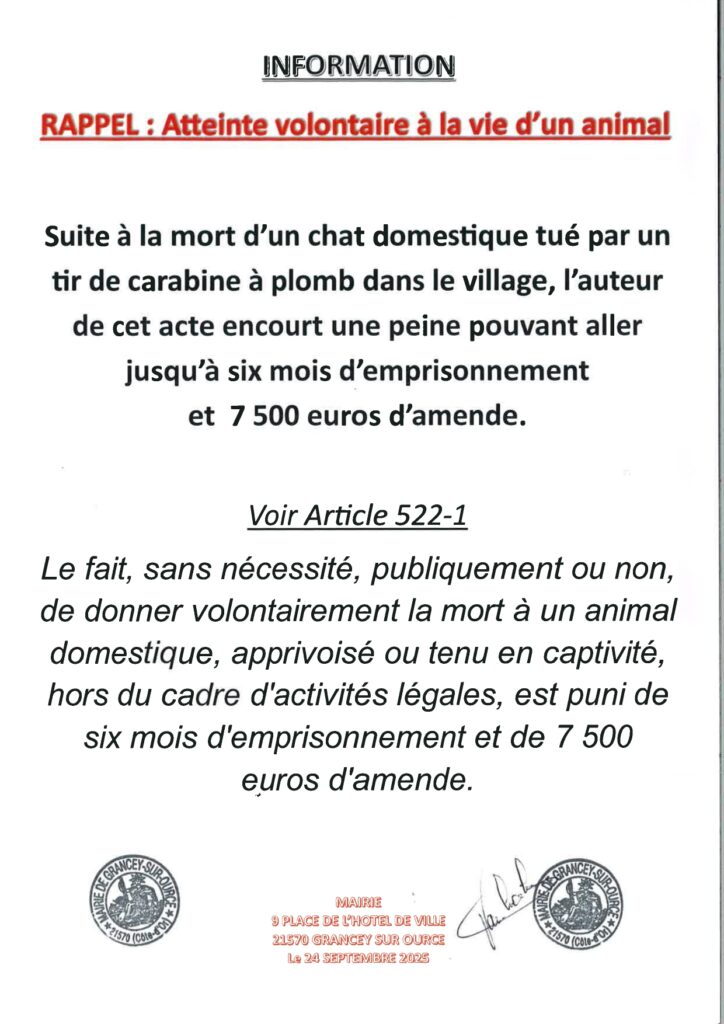 Atteinte volontaire à la vie d’un animal